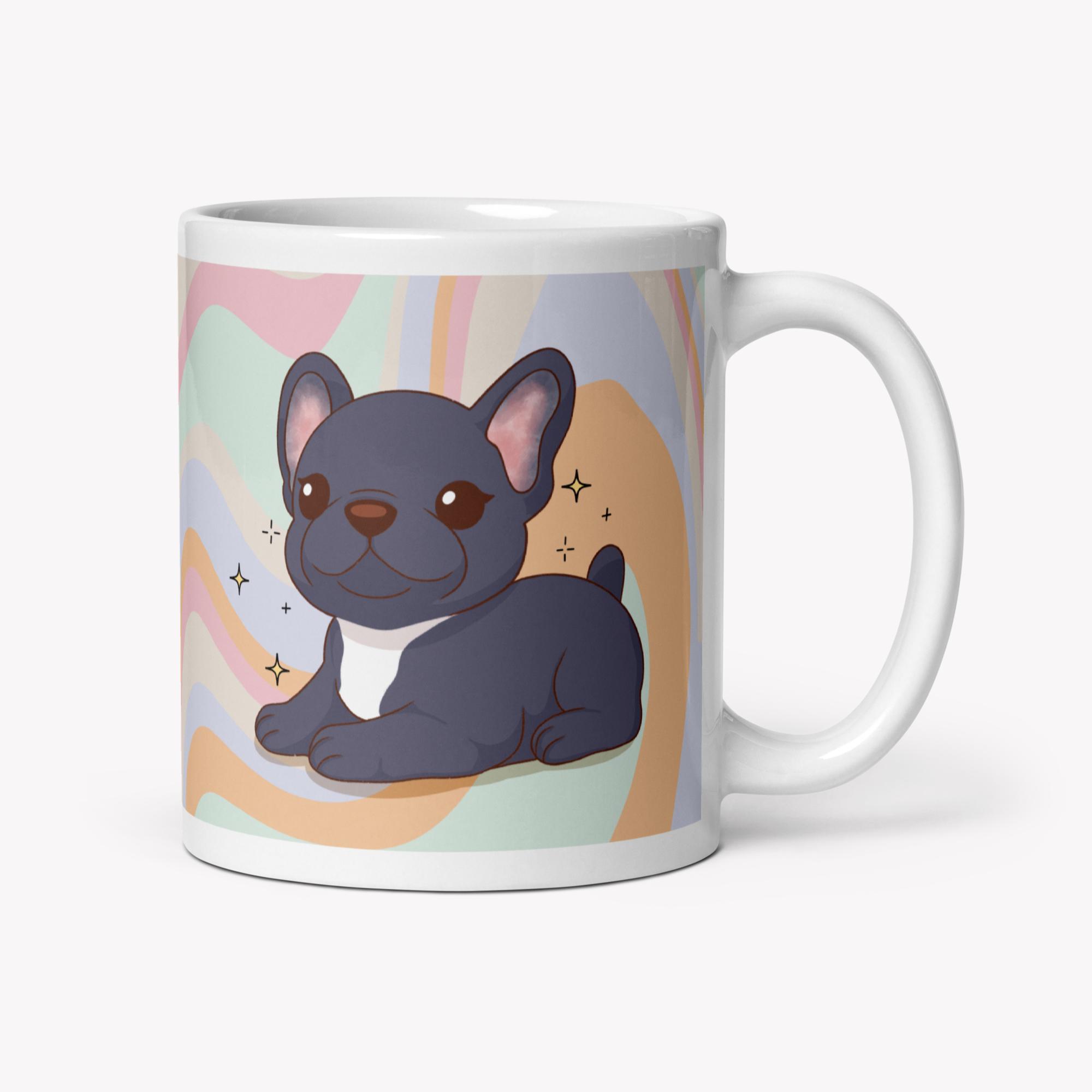 Uma caneca de 325ml com a ilustração da raça Buldogue Francês, feita para aquecer o coração de qualquer pet lover 💛